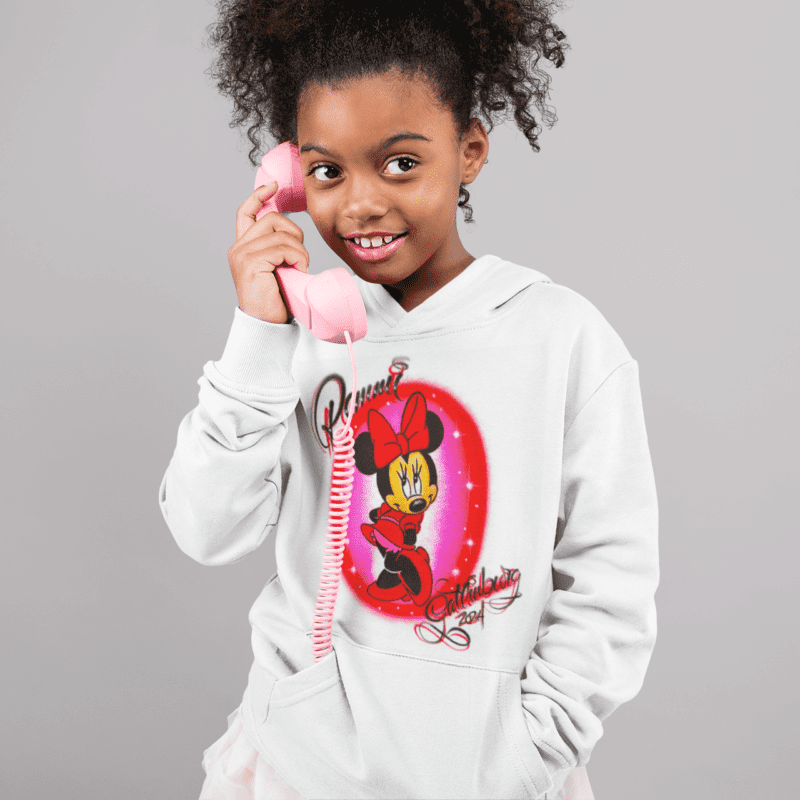 Get ready to sprinkle some Disney magic on your wardrobe! Whether you’re head over heels for Mickey, Minnie, and the enchanting world of the Magic Kingdom, or you just want to add a touch of whimsy to your day, our idea gallery is brimming with inspiration for one-of-a-kind airbrushed t-shirts and hoodies. Our top-notch artists will transform your ideas into a unique design that’s as special as you are. Feel free to share imagesd let’s make your Disney dreams  that spark your imagination, ana stylish reality!