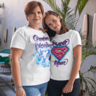 Let’s celebrate the amazing moms and grandmothers in our lives with a touch of creativity and a whole lot of love! Custom airbrushed t-shirts or hoodies offer the perfect way to show them how much they mean to you. Whether it’s a personalized family portrait, a special quote, or a unique design, we invite you to share your photos or inspirational images. We’ll bring your ideas to life, creating a truly one-of-a-kind gift that will warm Mom and Grandma’s hearts. Make this Mother’s Day one to remember by gifting something as unique and special as they are!